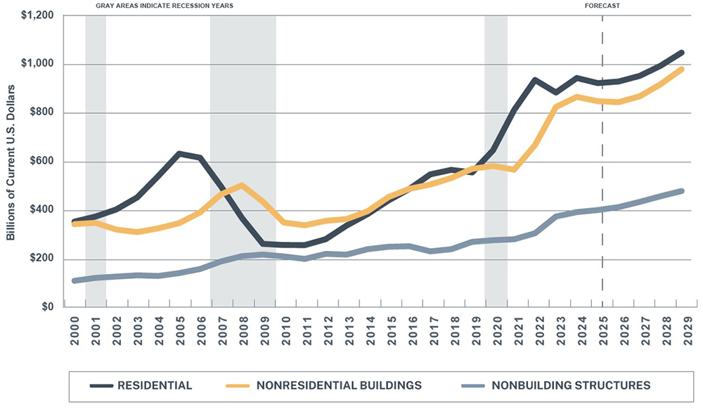 One of the most powerful demand drivers entering 2026 is the continued expansion of data centers and power infrastructure. In some markets, data centers account for more than 25% of total nonresidential building construction. While this trend was already emerging last year, it remains a central force shaping construction spending and resource allocation.