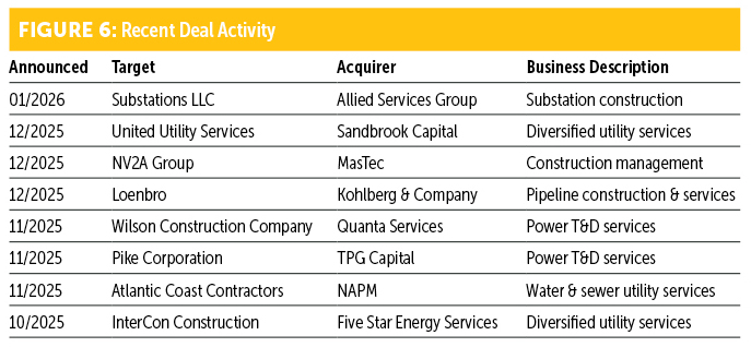The final quarter of activity in 2026 saw multiple completed transactions that continue to reshape the utility and communication construction markets. Despite global uncertainty, long-term macro trends continue to support mergers and acquisitions (M&A) activity across the utility infrastructure segment.